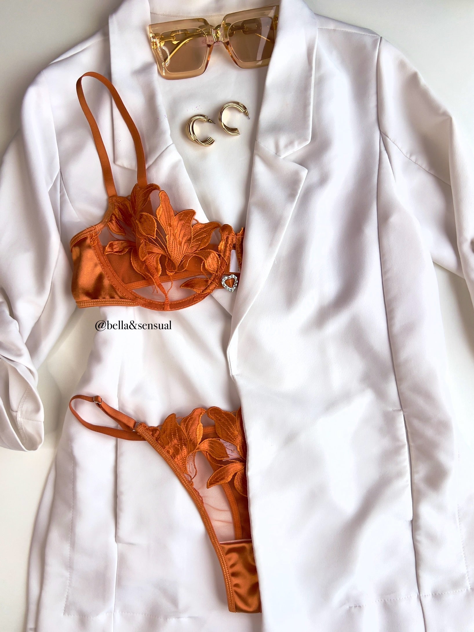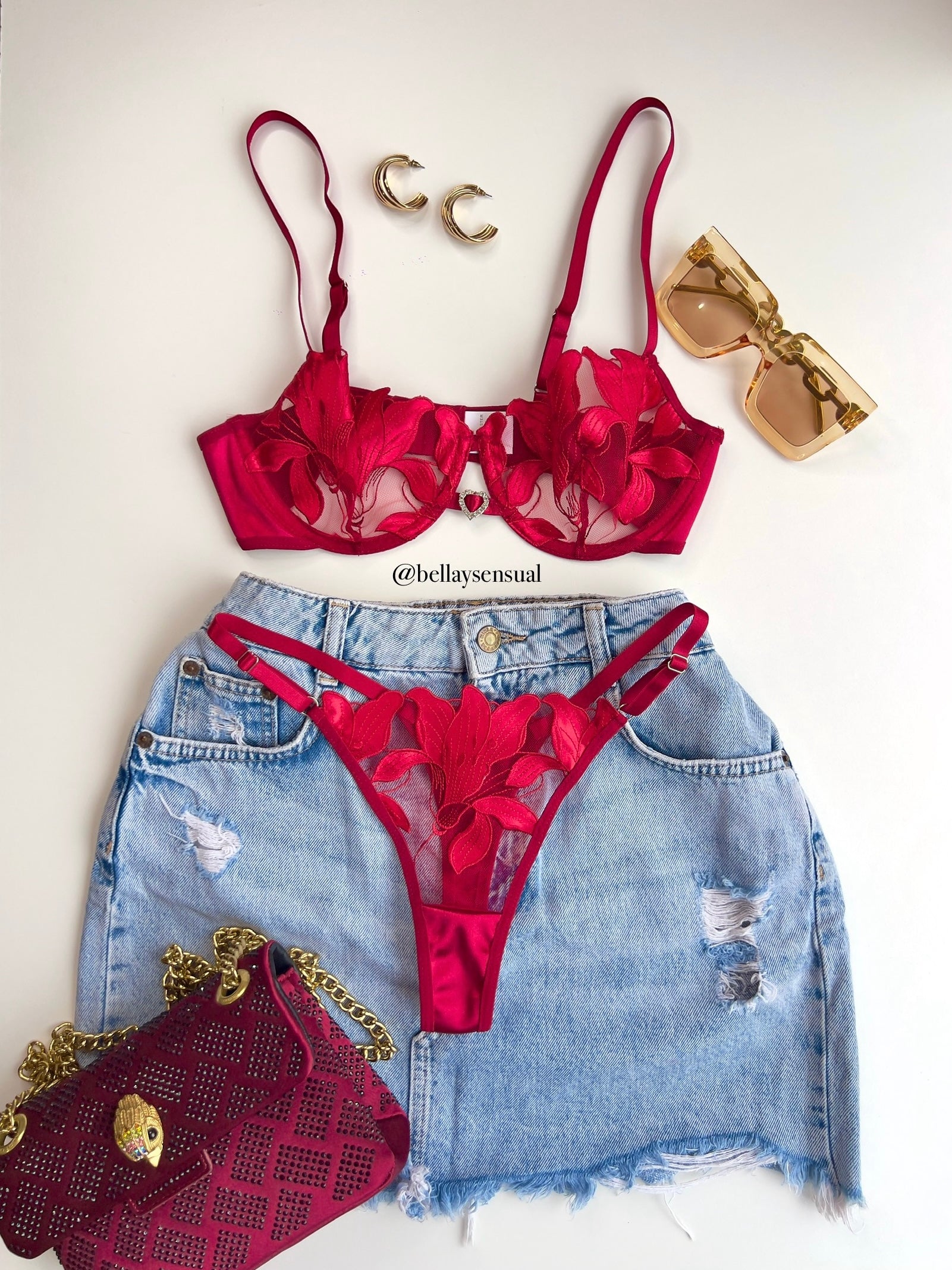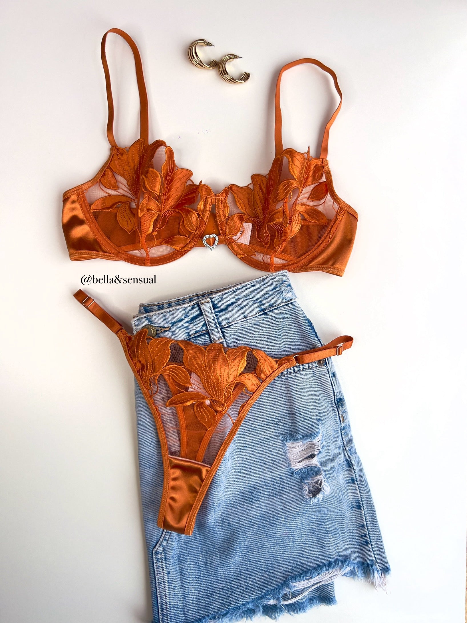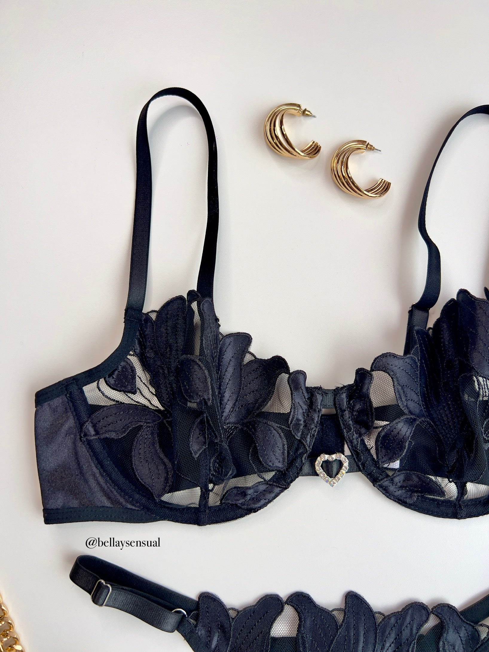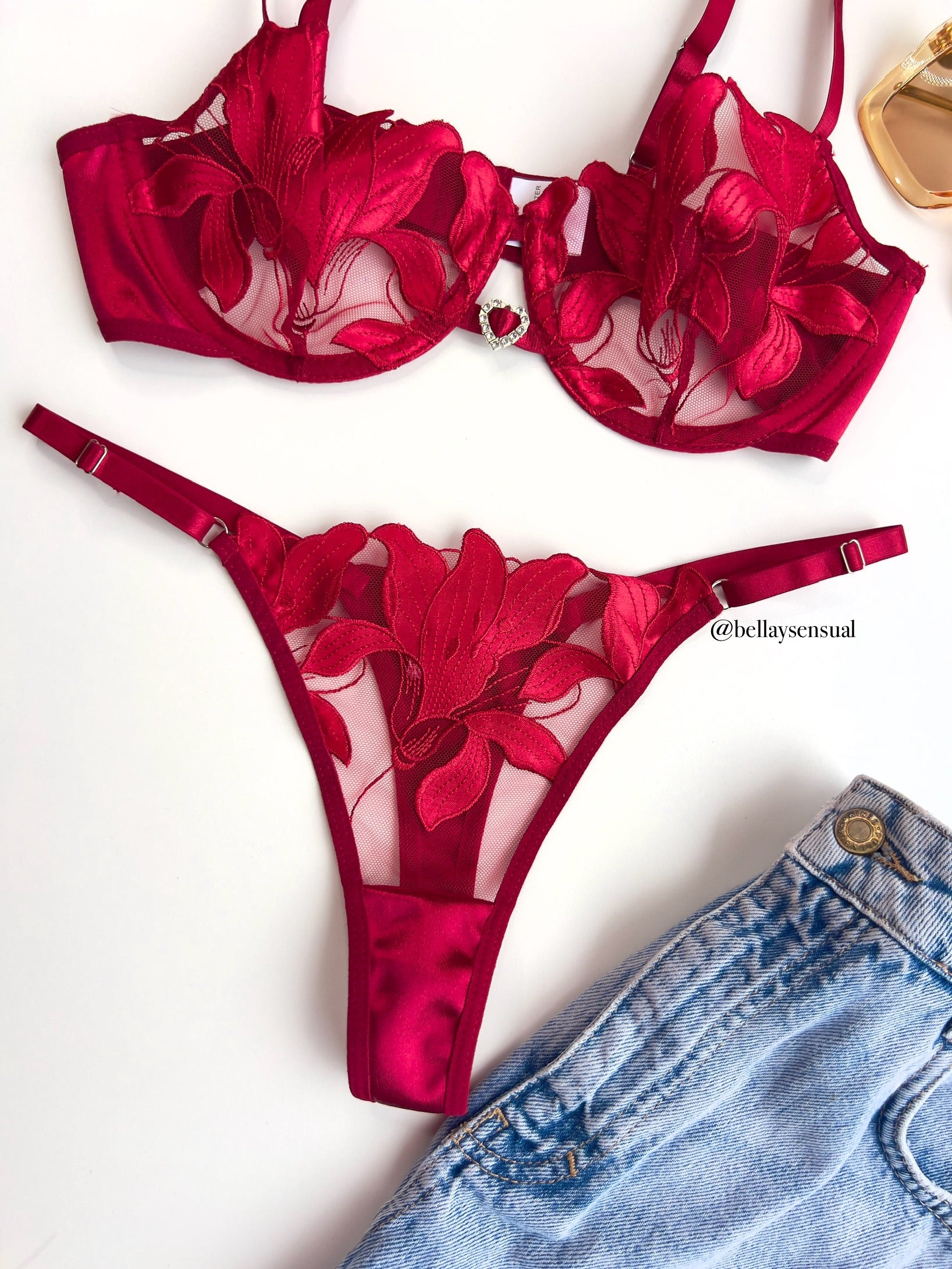 Set de dos piezas, sujetador y tanga regulable.